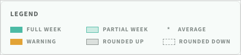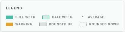 If the number of days added or removed is greater than 20% of the schedule, the modified cells will be highlighted in orange as a warning. Typically this only occurs when rounding up to the nearest month or quarter.