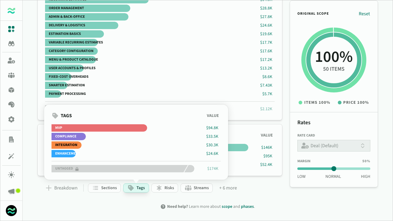 The key to effective scoping is using priorities, risks, tags, and categories in your estimates: