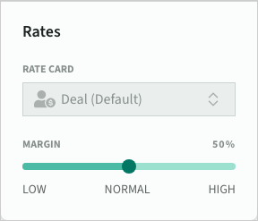 You can adjust the active rate card for the Phase from either the Scope or Schedule settings panel (they share the same rate card property). When you change the rate card or margin, the price and value of all roles will update automatically. Note that multiple rate cards is only available on Business and Enterprise plans.