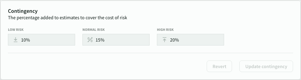 - Contingency (loading per risk level)