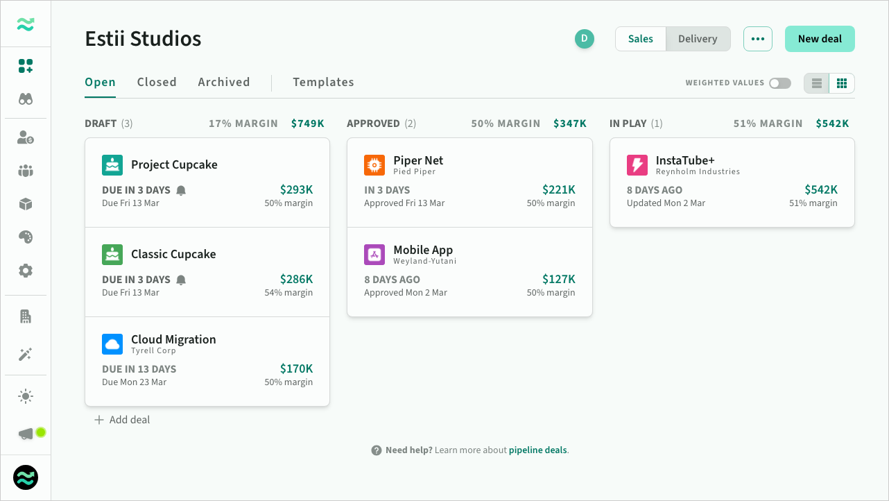 The pipeline is the heart of your space, and the central dashboard for all your deals.