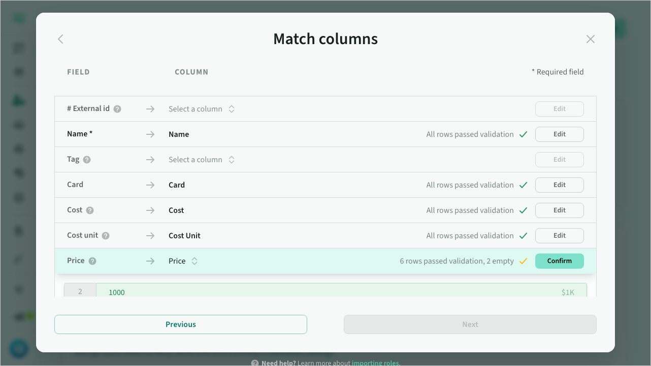 The role importer enables you to import rate cards from any existing spreadsheet or CSV format, with inline mapping and import preview.