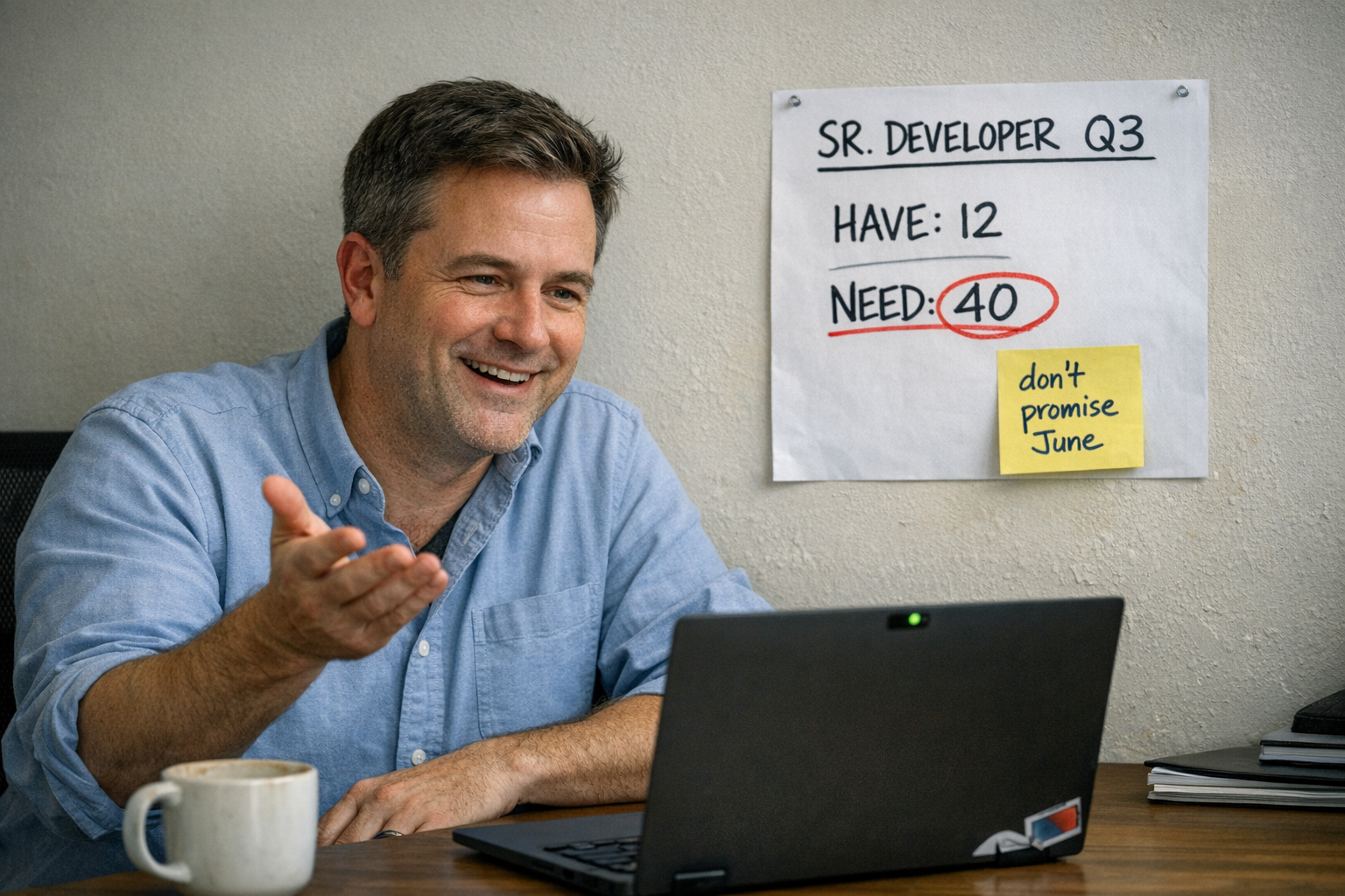 Monday morning, every open deal above a meaningful value gets a quick capacity check against the current forecast. Any role-month flagged red triggers a shaping conversation with the seller that week.